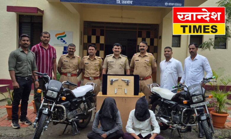 अमळनेर: अमळनेर ते चोपडा रस्त्यावर पोलिसांनी गुरुवारी (२८ ऑगस्ट) रात्री साडेदहाच्या सुमारास धडक कारवाई करत दोन तरुणांकडून दोन गावठी पिस्तूल आणि सहा जिवंत काडतुसे जप्त केले आहेत. या कारवाईत दोन्ही आरोपींना अटक करण्यात आली आहे.
