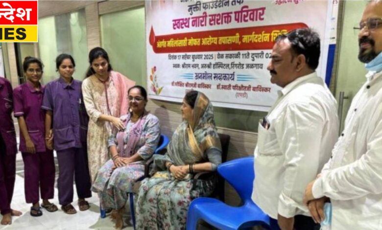जळगाव, (प्रतिनिधी) : पंतप्रधान नरेंद्र मोदी यांच्या वाढदिवसानिमित्त ‘सेवा सप्ताह’ अंतर्गत ‘स्वस्थ नारी, सशक्त परिवार’ या कार्यक्रमाचे आयोजन करण्यात आले होते. मुक्ती फाउंडेशन आणि अरुश्री परिवाराच्या संयुक्त विद्यमाने श्रीराम भवन येथील अरुश्री हॉस्पिटलमध्ये महिलांसाठी मोफत आरोग्य तपासणी, औषधोपचार आणि मार्गदर्शन शिबिराचे आयोजन करण्यात आले.