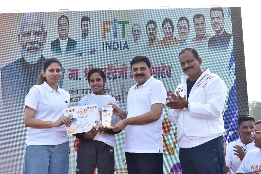 नमो रनचे उद्घाटन क्रीडा ज्योत पेटवून , बलून सोडून केंद्रीय क्रीडा राज्यमंत्री रक्षा खडसे, वस्त्रोद्योग मंत्री संजय सावकारे, यांच्या हस्ते करण्यात आले . याप्रसंगी, मंडळ रेल प्रबंधक सुनील कुमार सुमन आर के मीना, चित्रेश जोशी, चंद्रकांत बाविस्कर केतकी पाटील , परीक्षित बऱ्हाटे, किरण कोलते संदीप सुरवाडे गिरीश महाजन अमोल महाजन जयंत माहूरगड प्रशांत पाटील, आनंद ठाकरे गोलू पाटील पवन बुंदिले, प्रमोद नेमाडे, अनिल वारके, पवन बुंदिले अनिरुद्ध कुलकर्णी जयंत माहूरकर, निखिल वायकोळे, गिरीश महाजन विनीत हंबर्डीकर, अनिता आंबेकर, वैशाली सैतवाल, संकल्प वाणी खुशाल जोशी ,प्रवीण कर, प्रशांत पाटील, प्रशांत नरवाडे, तालुका क्रीडा अधिकारी मीनल थोरात , क्रीडा व शा‌ शि‌. शिक्षक महासंघाचे राज्य उपाध्यक्ष तथा जिल्हाध्यक्ष डॉ .प्रदीप साखरे , रमण भोळे, आदी उपस्थित होते.
