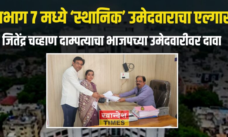 जळगाव l २९ डिसेंबर २०२५ l प्रतिनिधी l आगामी महापालिका निवडणुकीच्या पार्श्वभूमीवर प्रभाग क्रमांक ७ मध्ये राजकीय हालचालींना वेग आला असून, ‘स्थानिक उमेदवार’ हा मुद्दा आता ऐरणीवर आला आहे. श्री आर्टस् चे संचालक आणि ख्यातनाम सामाजिक कार्यकर्ते जितेंद्र सुभाष चव्हाण व त्यांच्या पत्नी कल्पना जितेंद्र चव्हाण यांनी भारतीय जनता पक्षाकडे आपली उमेदवारी अर्जाद्वारे दाखल केली आहे. यामुळे प्रभागात आता स्थानिक विरुद्ध उपरे असा नवा संघर्ष पाहायला मिळण्याची शक्यता आहे.