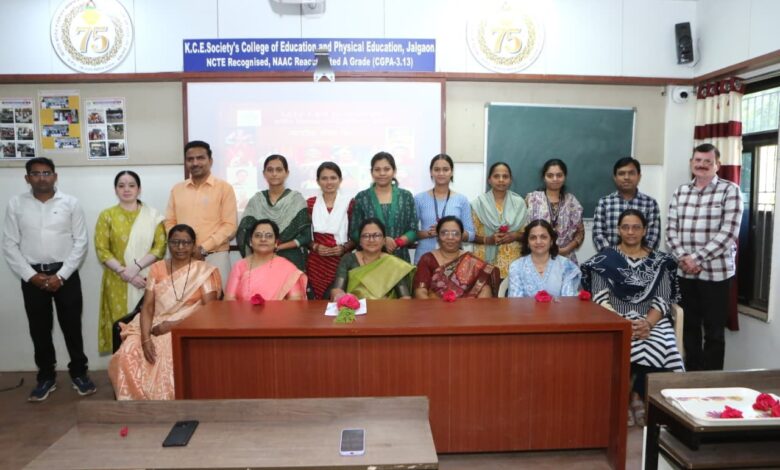 जळगाव प्रतिनिधी के.सी.ई.सोसायटीचे व्ही.पी. होले शिक्षणशास्त्र आणि शारीरिक शिक्षणशास्त्र महाविद्यालय जळगाव येथे जागतिक महिला दिन साजरा करण्यात आला यावेळी कार्यक्रमाच्या अध्यक्षा महाविद्यालयाच्या प्रभारी प्राचार्या डॉ.रंजना सोनवणे यांनी उपस्थित सर्व प्राध्यापीका व विद्यार्थीनी यांचे गुलाब पुष्प देऊन स्वागत केले.कार्यक्रमाचे समन्वयन डॉ.संभाजी जमधडे यांनी कार्यक्रमाचे प्रास्ताविक केले.तर महिला प्रतिनिधी म्हणून डॉ.सुनीता नेमाडे यांनी मनोगत व्यक्त करतांना महिला सन्मान व महिलांच्या प्रापंचिक जबाबदार्या याविषयी मत मांडतांना महिलांचा आदर नेहमीच केला पाहिजे तसेच खरे पाहता आजही स्त्रियांना समान अधिकार प्राप्त झालेले नाहीत असे मत मांडले.तर अध्यक्षिय भाषणात डॉ. रंजना सोनवणे यांनी स्त्रियांच्या व्यथा आणि कथा याविषयावर आपले मत मांडले.या वेळी महाविद्यालयातील सर्व प्राध्यापक व विद्यार्थी उपस्थित होते.