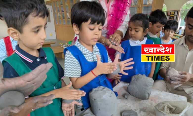 जळगाव, (प्रतिनिधी) – अनुभूती बाल निकेतन आणि अनुभूती विद्यानिकेतन या शाळांमध्ये गणेशोत्सवाच्या निमित्ताने विद्यार्थ्यांनी शाडूमातीपासून श्रीगणेशाच्या आकर्षक मूर्ती तयार करण्याचा उत्साही उपक्रम राबवला गेला. विद्यार्थ्यांमध्ये सर्जनशीलता, पर्यावरण जागरूकता आणि भारतीय संस्कृतीबद्दल आदरभाव वाढावा, लहान विद्यार्थ्यांनी आपल्या कोमल हातांनी मातीला विविध आकार देऊन सुंदर गणेश मूर्ती साकारल्या, ज्यामुळे लहानांमध्ये कलेची आवड जागृत या उपक्रमाचा मुख्य उद्देश होता.